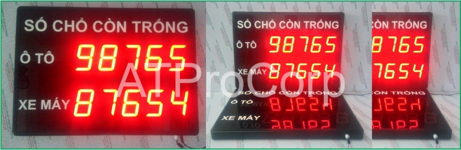 Bảng điện tử hiển thị số lượng còn trống trong bãi đỗ xe. Bảng LED điện tử có hiển thị số lượng xe máy, số lượng ô tô rõ ràng và chính xác.
