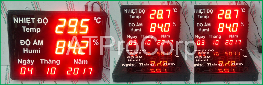 Đồng hồ đo độ ẩm không khí gồm 2 loại : AT-THMT-S sử dụng led 50 x 70 mm (kích thước 220 x 400 mm ), AT-THMT sử dụng led 90 x 120 mm (kích thước 350 x 600 mm). Đông hồ có khung nhôm định hinh chịu lực và mặt trước sử dụng mica Đài Loan. Sử dụng cảm biến SHT10 của Thụy Sĩ nên độ chính xác cao và sai số rất thấp. Ngoài ra đồng hồ có thể hiển thị 2 mặc tùy theo yêu cầu của khách hàng.